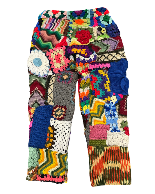 BLUESIN’S “REACHING OUT THE BLUE” PATCHWORK CROCHET SWEATPANTS