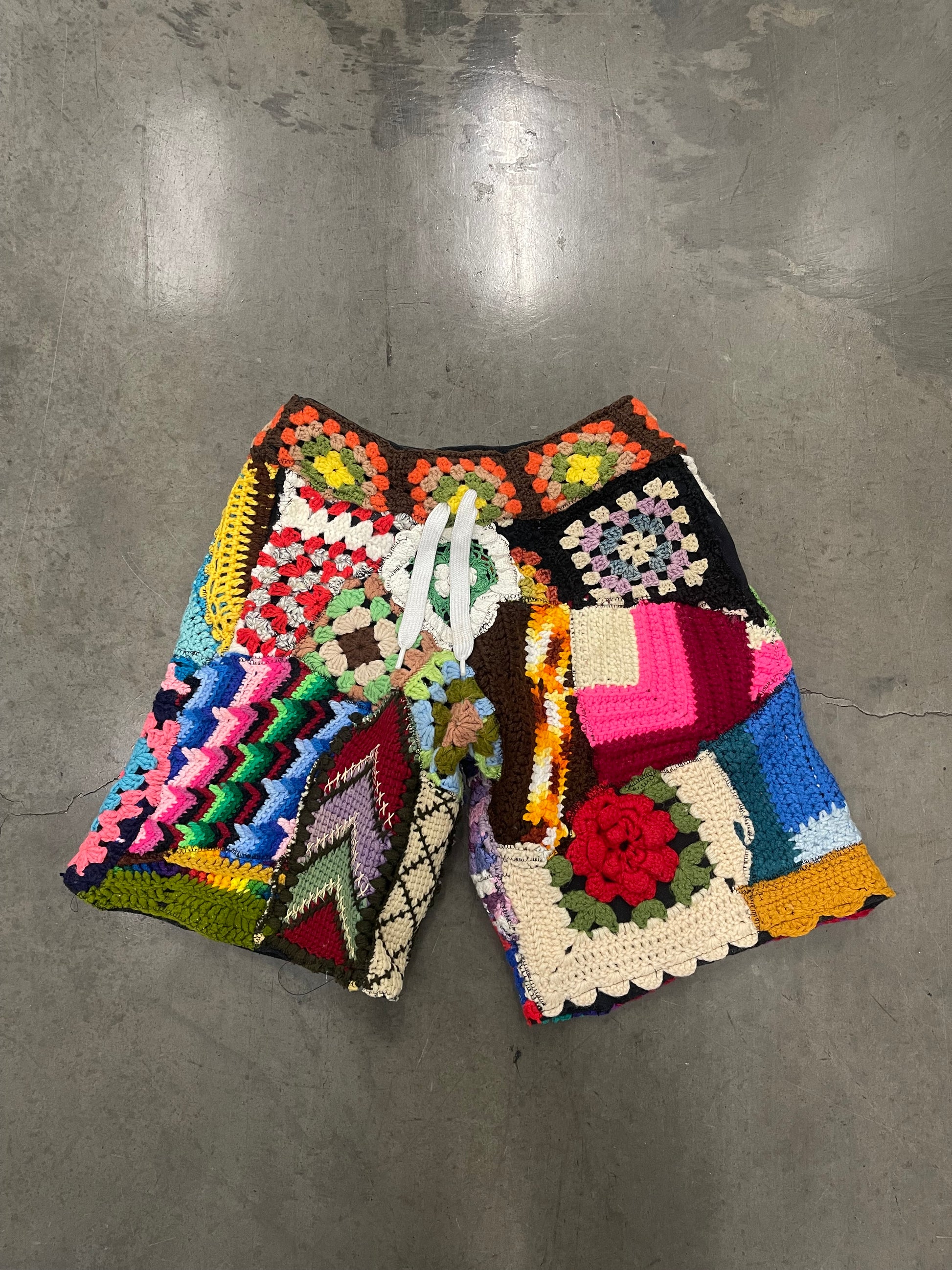 BLUESIN’S “IN A MELLOW TONE” PATCHWORK CROCHET SWEAT SHORTS