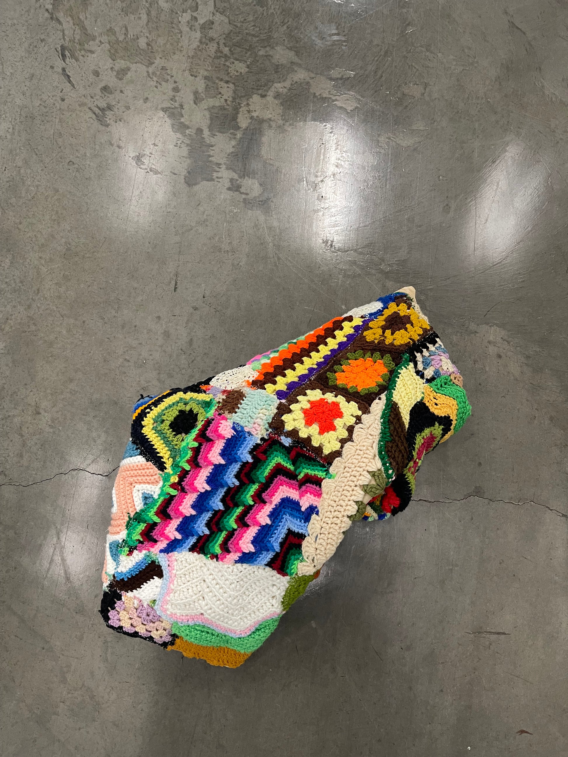 Bluesin’s “Looking Ahead” Patchwork Chunky Crochet Wool Lined Vintage Reworked Chore Coat/Jacket