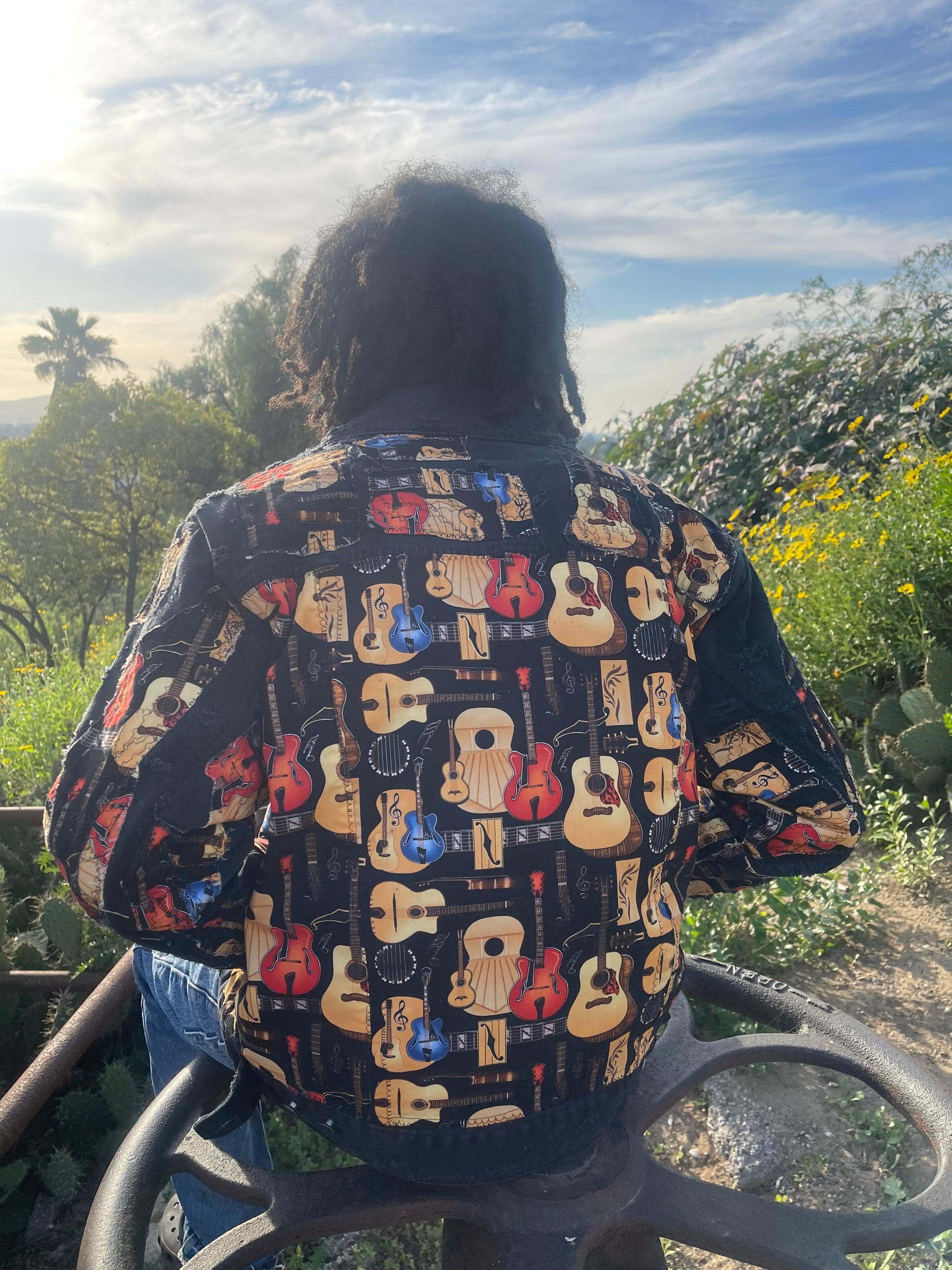 BLUESIN’S “STARTS WITH THE STRINGS” DECONSTRUCTED GUITARS DENIM TRUCKER JACKET